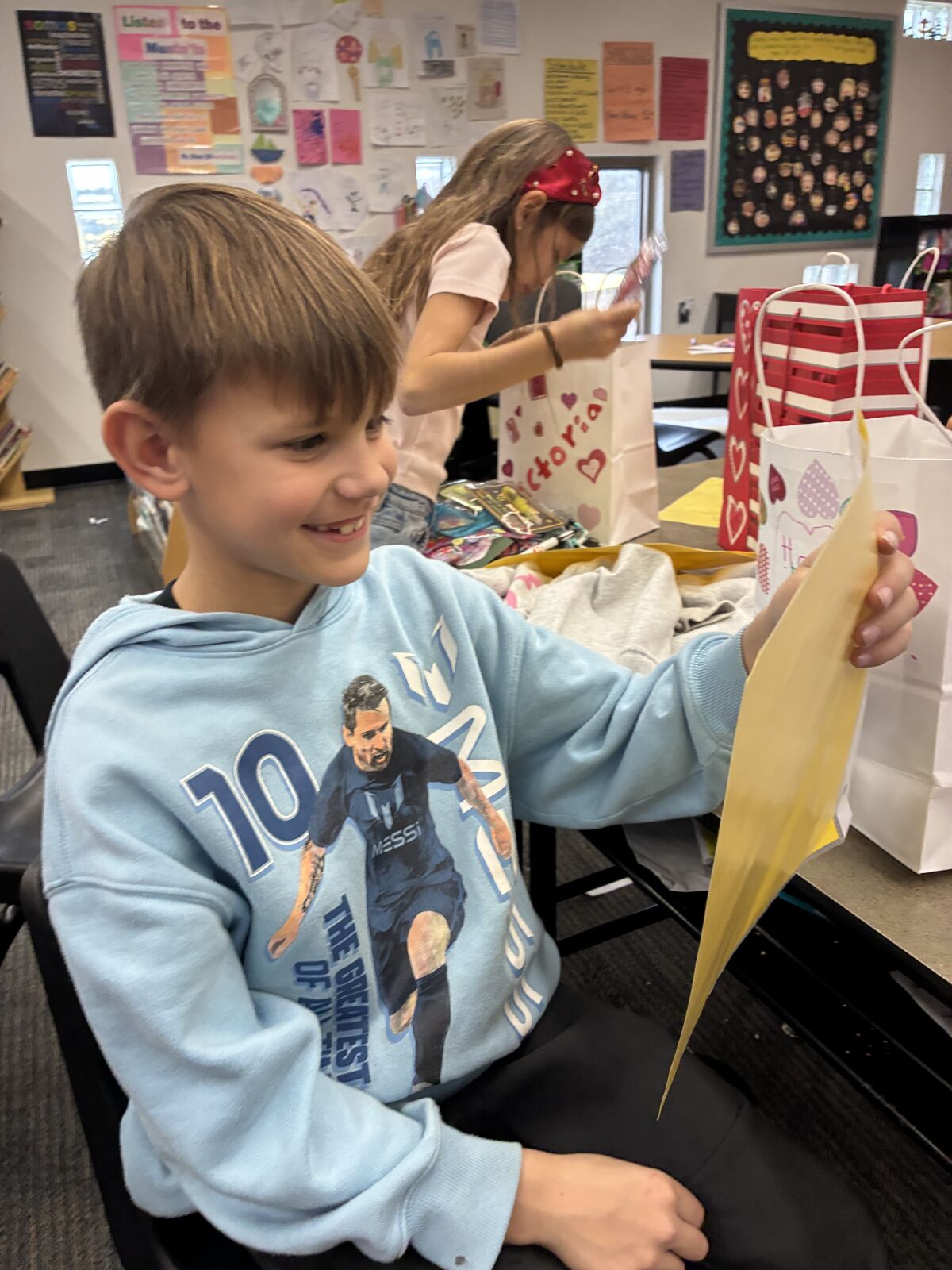 When the pages were handed out, the reactions told the whole story. Students in Valentine's Day reds and pinks settled into their seats and unfolded the yellow sheets with a kind of quiet intensity rarely seen in a room full of second graders. Some read alone, tracing a finger down the list. Others immediately found a friend to share with, two heads bent together over the page, pointing out favorites.