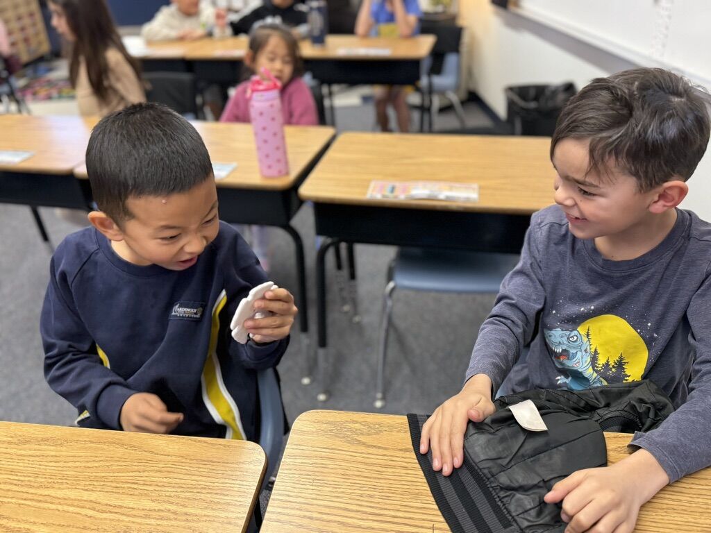 Sunrise Drive students examine a fossil up close, bringing hands-on discovery into everyday learning.